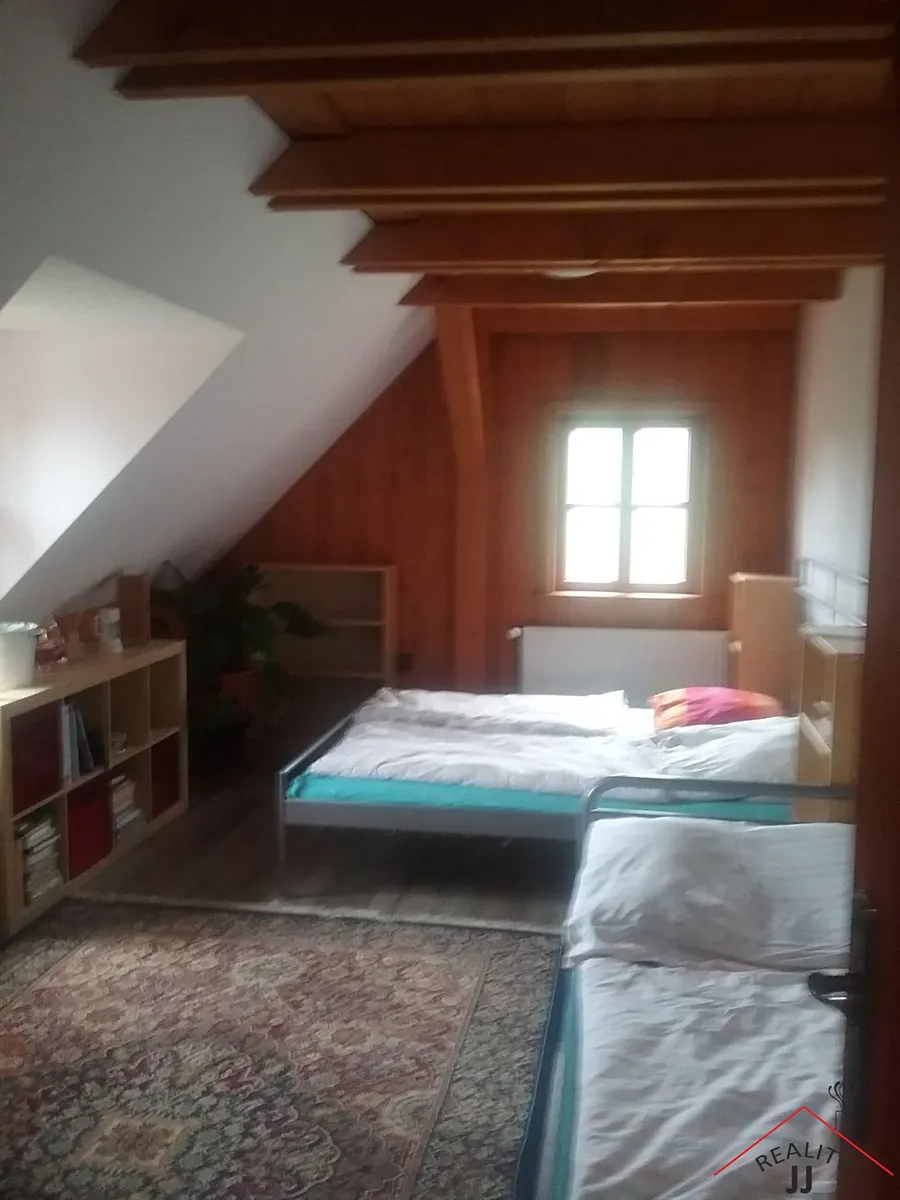 Po dřevěných schodech se dostaneme do 2.NP, (tři samostatné pokoje,šatna a sociální zařízení).Z prostoru velké chodby (11,19 m2) v poschodí je přístup do 3 pokojů (17,56 m2,19,65 m2 a 29,54 m2) m2). Jeden z pokojů- ten největší - ložnice je spojená se šatnou (2,2 m2). Z chodby je přístup také na půdu.
