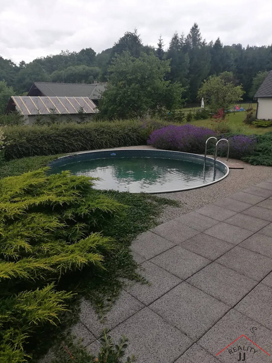 V přímém pověření majitelky nabízíme k prodeji roubenou chalupu – rodinný dům kolaudovaný v r. 2013. Dům je v perfektním stavu má celkovou plochu 185m2 s velkou plochou pro parkování - 6 vozů a velkou zahradou 3 000m2 s ovocnými. stromy a krytým bazénem.