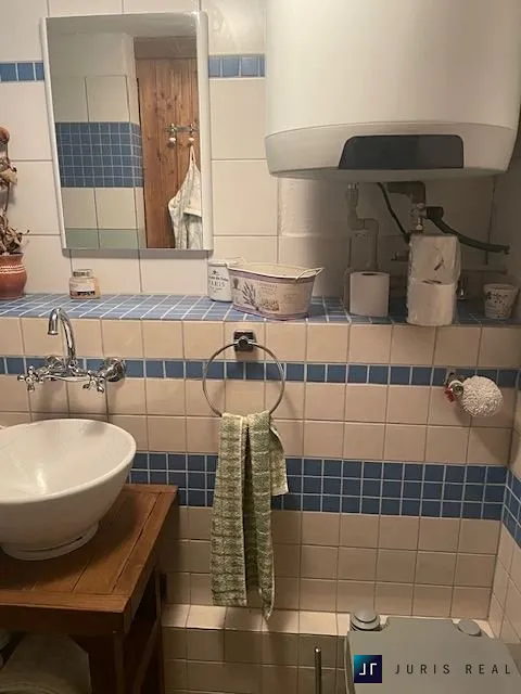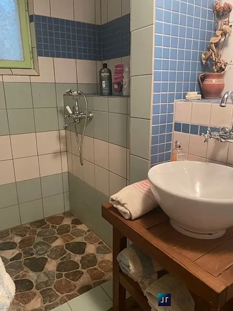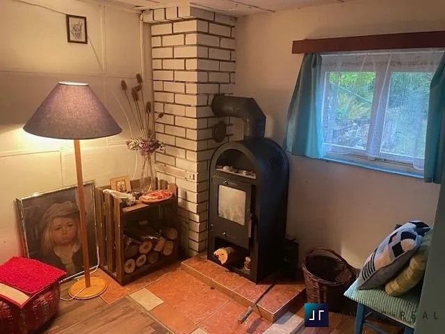 V přízemí chaty se nachází vstupní zastřešená veranda s příjemným pohledem do zeleně s kuchyňským koutem, ze které vstoupíme do obývacího prostoru s kamny na dřevo. Dále je tu vstup do nově postavené koupelny se sprchovým koutem a suchou toaletou. Do patra se vstupuje po žebříku, kde je malinká ložnice již obložená dřevem a úložný prostor – vše se dá spojit dohromady.