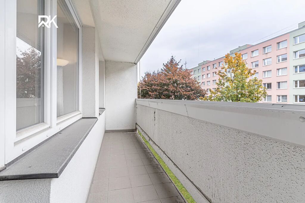 Velká lodžie poskytuje dostatek prostoru pro posezení i odpočinek. K bytu náleží také sklep a praktická komora, ideální pro uložení věcí, sportovního vybavení nebo sezónních potřeb.