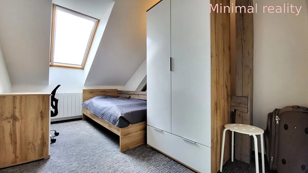 Vedle kuchyně se nachází pokoj, který je vybaven postelí, komodou a pracovním stolem. Druhý pokoj je zařízen ve stejném stylu.