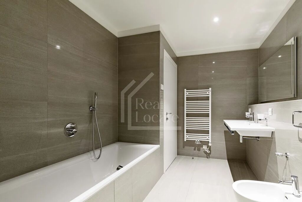 K dispozici jsou dvě elegantní koupelny s vanou, kvalitní sanitou a dostatkem úložného prostoru. Promyšlené dispoziční řešení bytu vytváří vzdušný a harmonický domov s dostatkem světla po celý den.
