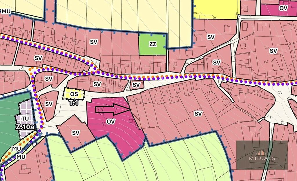 Pozemek je dle územního plánu určen k bydlení smíšené, venkovské, obytné bydlení a k výstavbě rodinného domu a nabízí ideální místo pro klidné bydlení v dosahu města. Příjezdová cesta je obecní a zpevněná. Na hranici pozemku je přípojka elektřiny, napojení na vodovod, kanalizaci a plyn je možné z přípojek sousedního domu.