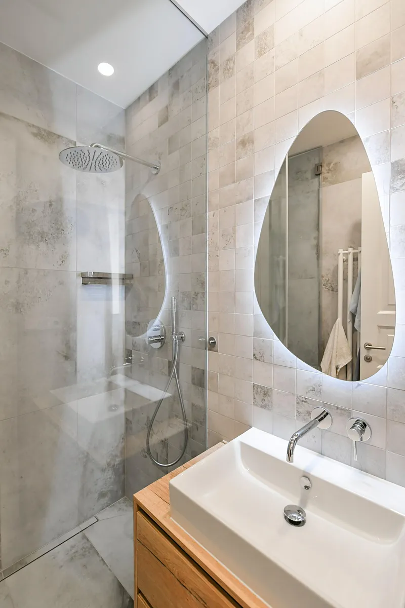 Interiér bytu je zařízený a dispozičně byt nabízí vstupní chodbu s vestavěnou šatní skříní (se zabudovanou pračkou/sušičkou 2v1), a se samostatným vstupem do místností: světlého obývacího pokoje spojeného s kuchyní vybavenou moderní kuchyňskou linkou včetně spotřebičů (lednice s mrazákem, varná deska, trouba, myčka, digestoř), ložnici s vestavěnou šatní skříní. Obě místnosti jsou vybavené klimatizací. Dále byt disponuje stylovou koupelnou s komfortně prostorným sprchovým koutem, a samostatnou toaletou. Součástí vybavení bytu tvoří: pračka/sušička 2v1, dřevěné dubové podlahy, nová okna s dvouvrstvým sklem. K bytu náleží sklep o velikosti 1,9m2, ke kterému se pohodlně dostanete výtahem.
