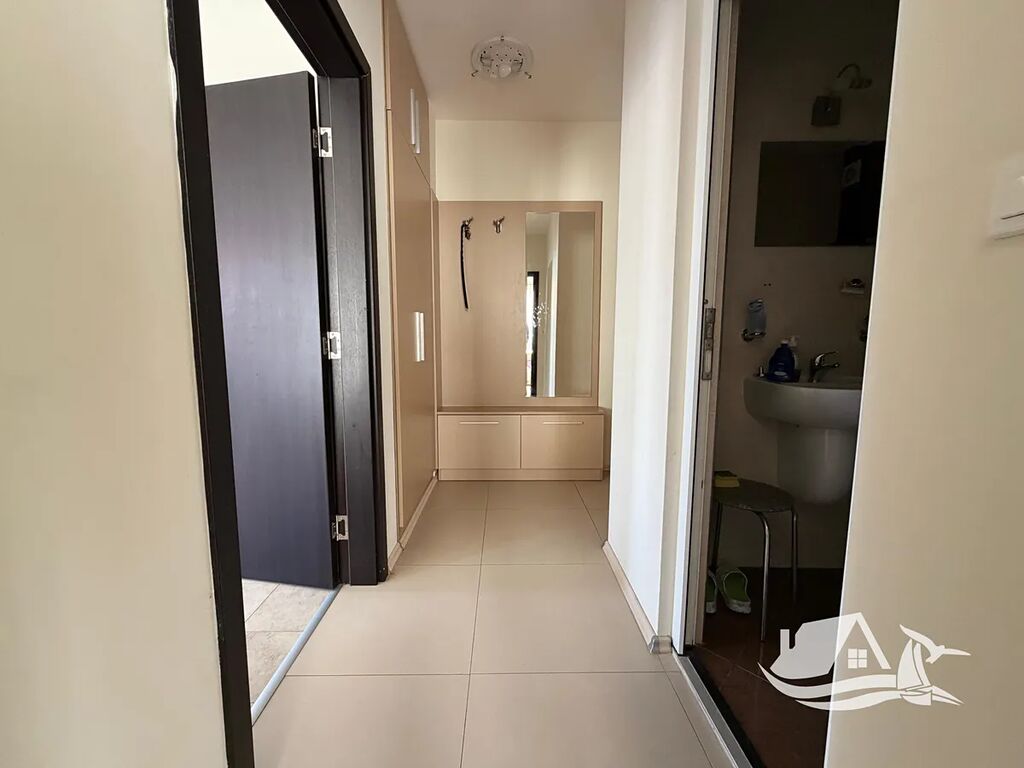 Byt je plně vybavený nábytkem a spotřebiči, připravený k okamžitému nastěhování nebo pronájmu. Z balkonu se otevírá příjemný výhled na bazén a zeleň komplexu, který nabízí klidné prostředí jen pár minut chůze od moře.