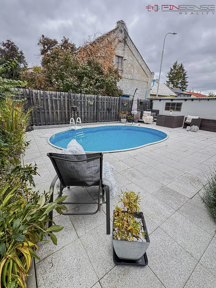 Příjemné prostředí doplňuje udržovaná zahrada s bazénem a možností posezení na terase.