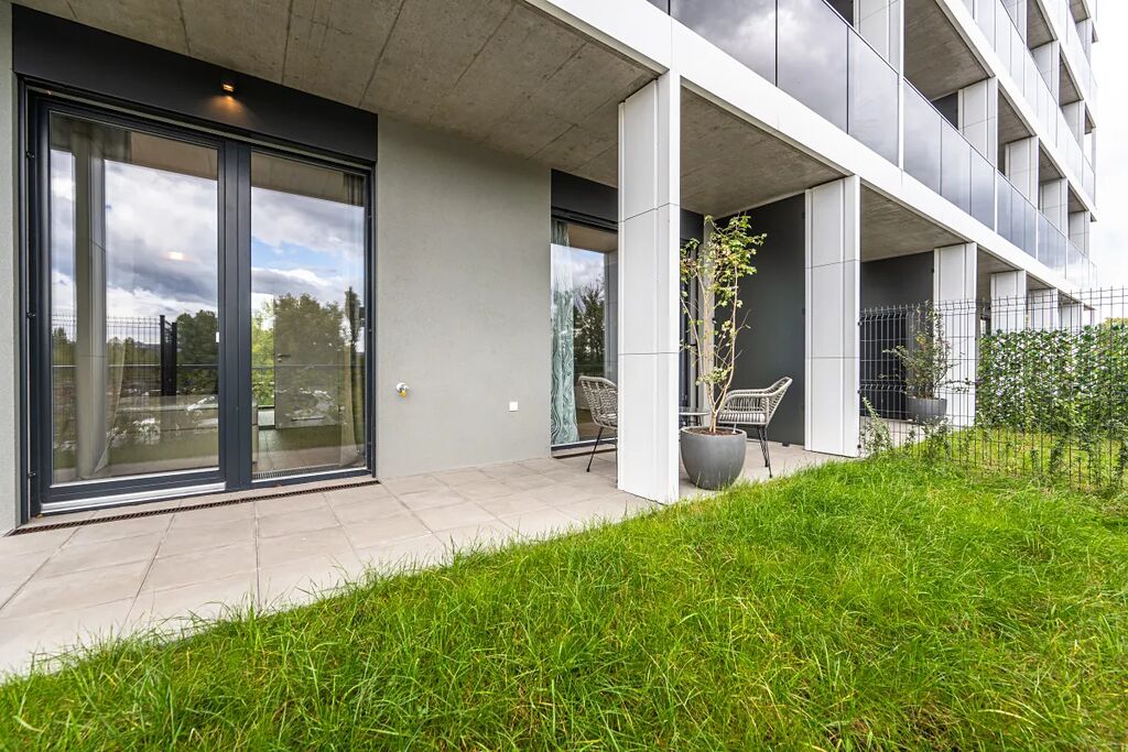 Díky terase a předzahrádce působí byt svěže, útulně a nabízí příjemné, pohodlné bydlení s atmosférou menšího rodinného domu.