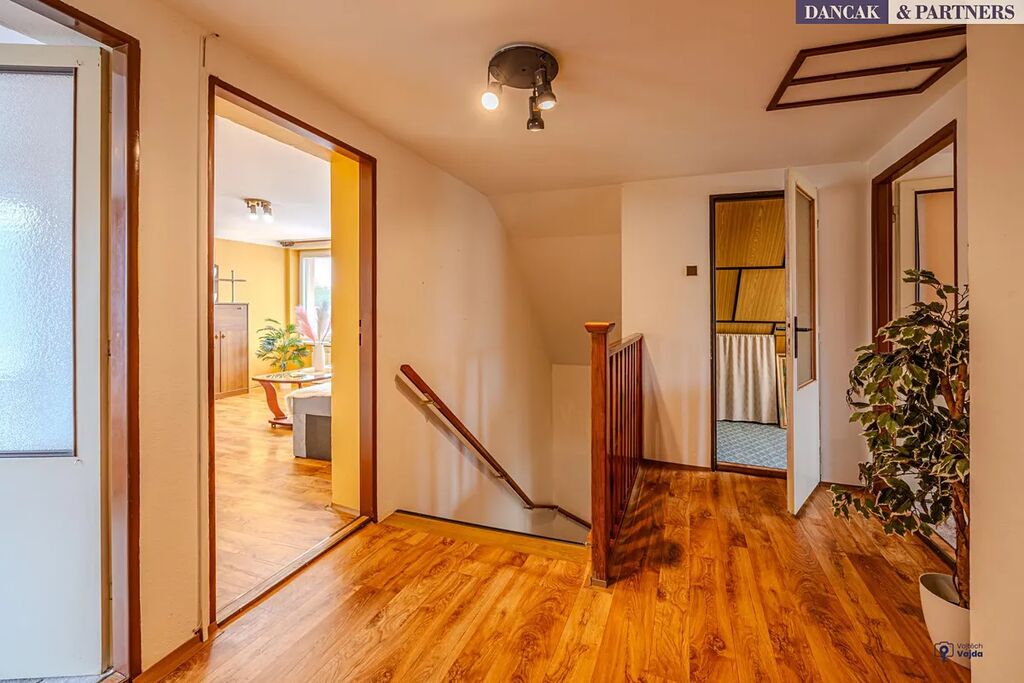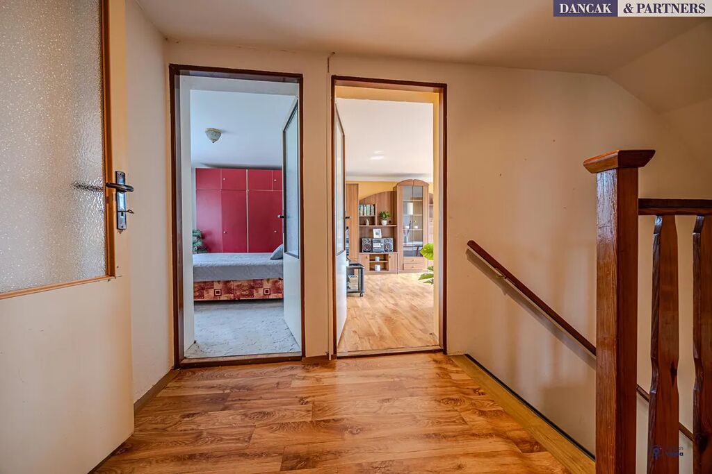 V patře jsou tři pokoje a v šikminách vznikly ještě dvě malé místnosti se střešními okny, které mají různorodé využití.