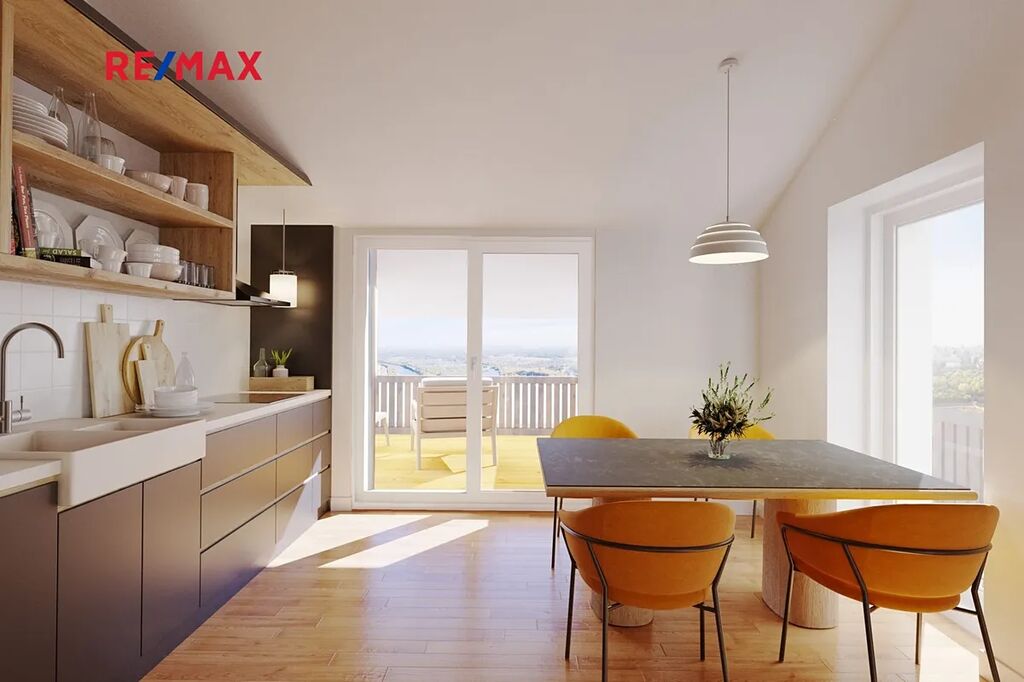 Dispozice tohoto velmi vzdušného a světlého apartmánu 3kk nacházejícího se ve 2NP a jeho podlahová plocha a dobré členění, nabídne až 8 lůžek. Apartmán disponuje malým pokojem se zvýšenou podestou na spaní, velkou ložnicí.  Obývací pokoj spojený s jídelním a kuchyňským koutem díky otevřenému prostoru do podkroví působí velice vzdušně a umožnil zbudování mezonetu s plnohodnotným spaním pro další 2-3 osoby. Prostorná chodba pro vestavěné skříně a velká koupelna jsou samozřejmostí. Značným benefitem je prostorná terasa přístupná z obývacího pokoje s krásným výhledem na Černou Horu a západ slunce. V domě je pouze 7 apartmánů, každý má k dispozici vlastní park. místo s možností dobíjení elektromobilu a sklad.prostory.