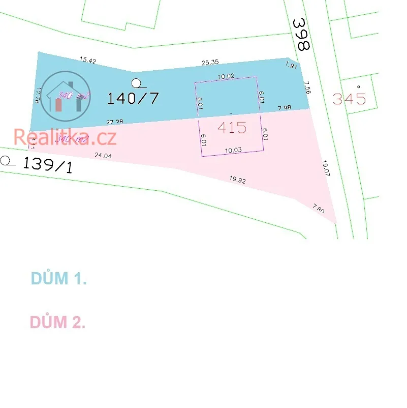 • Dům č. 1 nabízí větší zahradu, zatímco dům č. 2 disponuje větším prostorem před a vedle domu.
