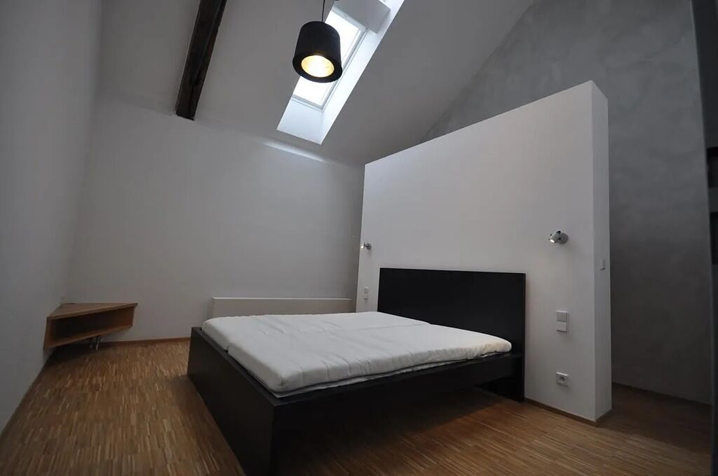 Interiér bytu je moderně zařízený s industriálními prvky velká okna, tři úrovně s galerií. Strop v obývacím pokoji je vysoký 8 metrů, v ložnicích je strop vysoký 5 metrů. Byt se nachází v přestavěné pivovarské budově a je plně zařízený. Ve spodním patře se nachází moderně zařízená kuchyň (indukční deska, trouba, lednice, mrazák, mikrovlnka, myčka), v kuchyni je specifickým prvkem bar s designovými sedadly z tramvaje Tatra T3 z 60.let., kuchyňský kout je spojen s prostorným obývacím pokojem, separátní toaleta a prádelna s pračkou a sušičkou. V horním patře je moderně zařízená koupelna (sprchový kout, vana, toaleta) a dvě samostatné ložnice s šatnou. Z obývacího pokoje vedou schody na designovou galerii. Byt je plně klimatizovaný a má přípojky pro vysokorychlostní internet/TV a satelitní TV.