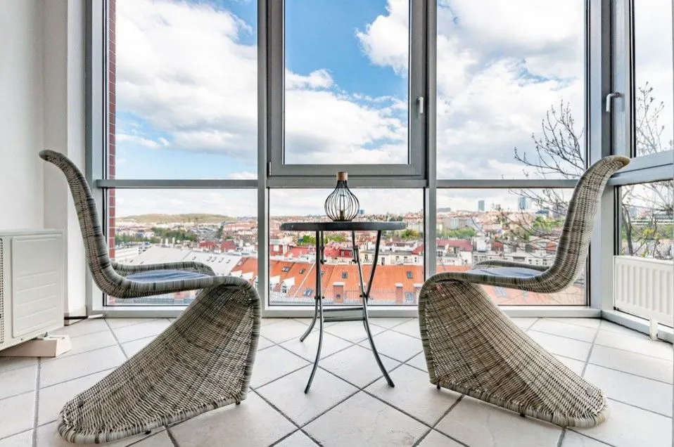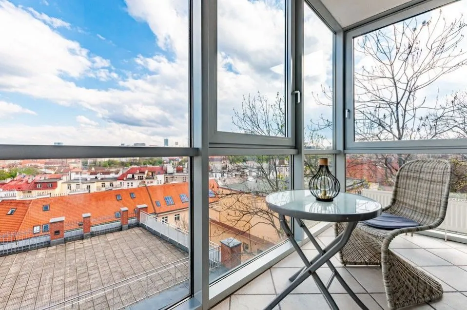 REZERVACE. REZERVACEPronájem slunného bytu 2+kk s terasou a parkovacím místem v ceně nájmu a neopakovatelnými výhledy na panorama Prahy s parkovacím místem v suterénu objektu a sklepem v atraktivní a klidné Rezidenci Zvonařka na Královských Vinohradech s recepcí, 24 hod ostrahou, vnitřním bazénem, terasou s neopakovatelnými výhledy na Prahu a privátním upraveným parkem ve vnitrobloku.