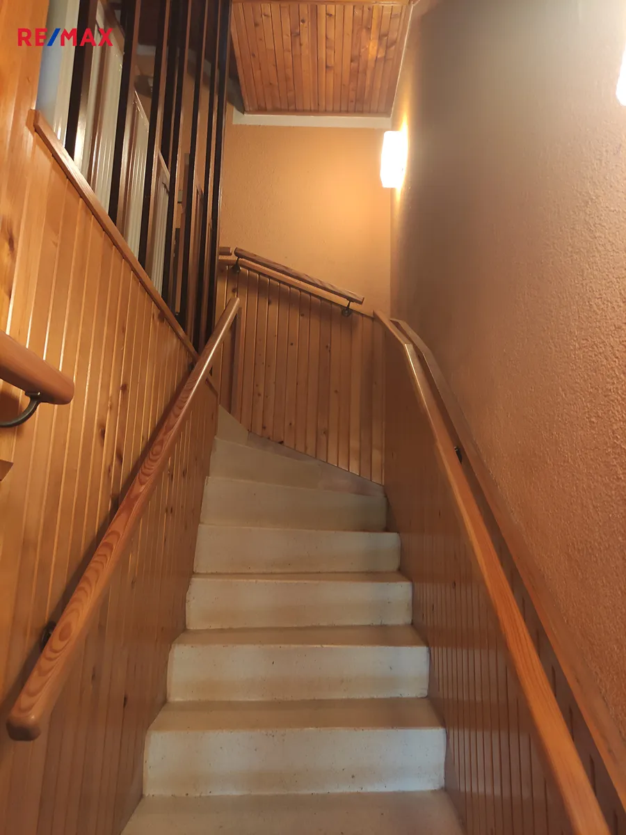 Představuji Vám ke koupi řadový rodinný dům o dispozici 5+1 v ulici Pod Zámečkem v Zábřehu, který byl postaven v roce 1975 - vhodný k rekonstrukci. Celý dům je podsklepený s garáží, kotelnou, sklepy a prádelnou. Z tohoto podlaží se chodbou po schodech dostaneme do 2. nadzemního podlaží, kde se nachází hala s krbem, obývací pokoj se zimní zahradou, kuchyň s jídelnou, samostatné WC a zastřešenou terasou s překrásným výhledem. Odtud se po schodech dostaneme do 3. nadzemního podlaží, kde se nachází 3 pokoje a koupelna, lodžie a další zimní zahrada, taktéž s výhledem na Zábřeh a Jeseníky. Zastavěná plocha domu činí 108 m2, obytná plocha domu činí cca 240 m2. K domu náleží zahrada o výměře 258 m2.