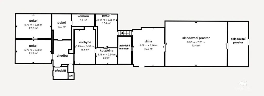 Plocha zbylých prostor (stodoly, chlévy, prádelna, garáž): 763 m2