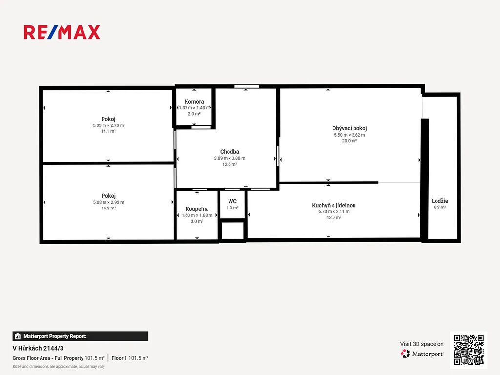 Dispozice je: obývací pokoj s východem do zasklené lodžie + kuchyňský kout, 2 samostatné pokoje, koupelna s vanou, toaleta, šatna, chodba s vestavěnými skříněmi.