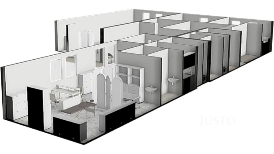 -	Flexibilní dispozice vhodné pro zdravotnická zařízení a prostory budou dokončeny na míru dle domluvy –