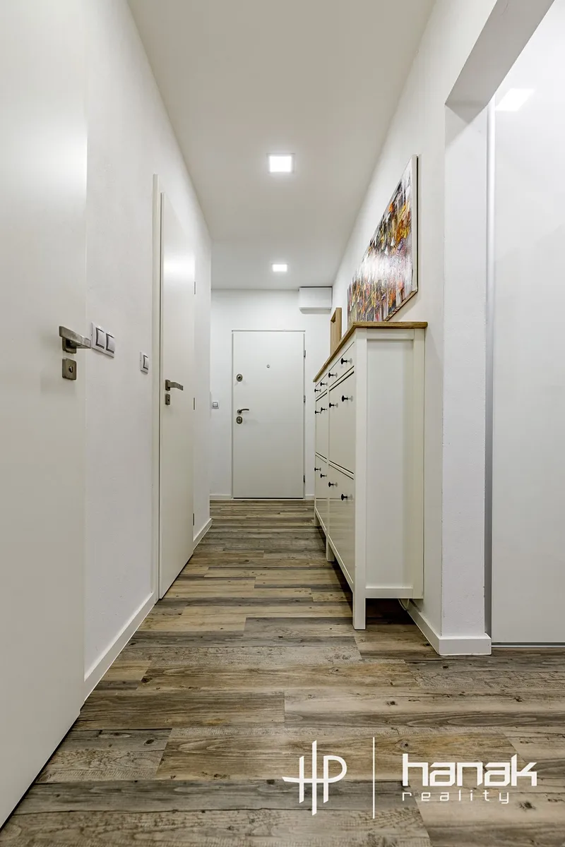Jednotka prošla nákladnou kompletní rekonstrukcí včetně rozvodů, topení a jádra. Na podlahách je položena kvalitní vinylová podlaha, dveře jsou CPL s masivním jádrem. V jednotce je také instalovaná kuchyňská linka včetně vestavěných spotřebičů.