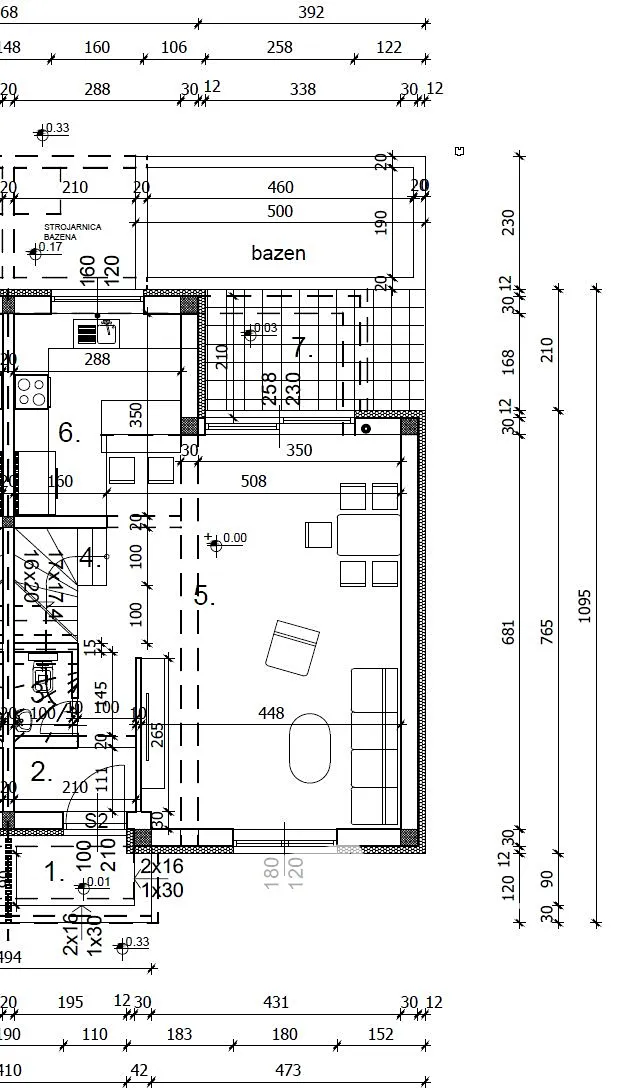 Plocha zahrady je 100 m2, bazénu 15 m2 a k domu náleží také dvě parkovací stání.