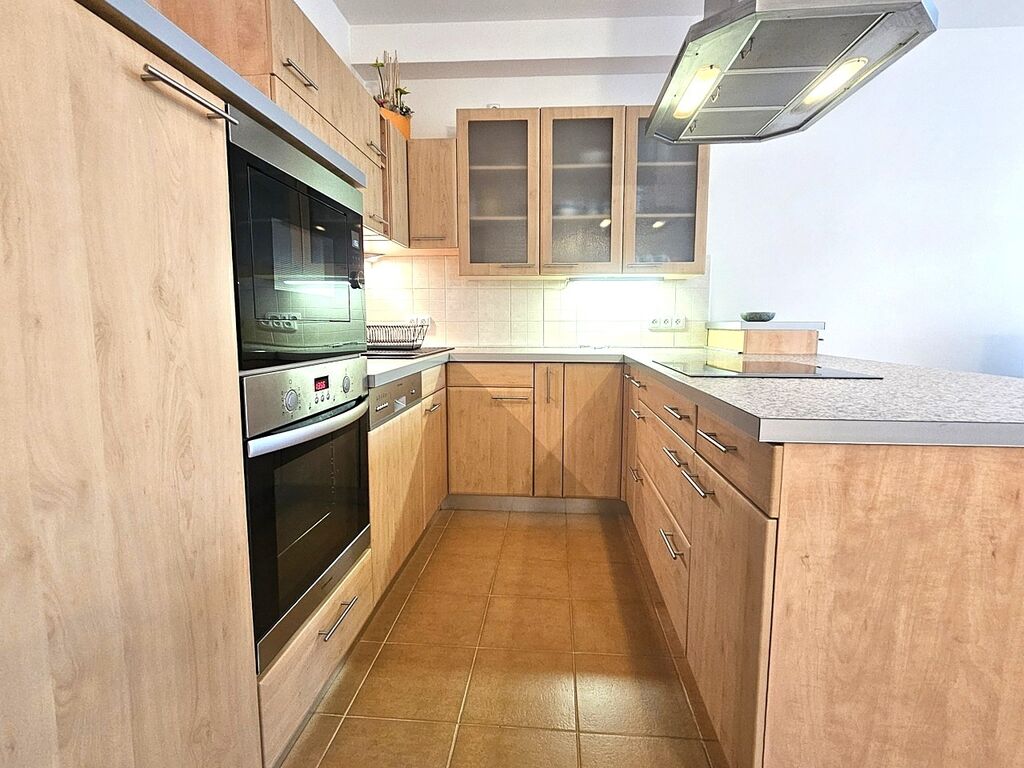 Byt sestává z velkorysého obývacího pokoje s kuchyňským koutem (28,6 m2), prostorné ložnice (15,2 m2), velké koupelny s WC (6,1 m2), vstupní chodby (6,1 m2), balkónu (2,3 m2), šatny (2,5 m2) a komory na patře bytu (2,7 m2). Byt se nabízí kompletně zařízený nábytkem. Moderní kuchyňská linka je vybavena sklokeramickou varnou deskou, el. troubou, digestoří, lednicí s mrazákem, myčkou, novou mikrovlnnou troubou, základním nádobím i kuchyňskými potřebami. Nábytek viz foto zůstává včetně 2 vestavěných skříní, TV napojenou na zesilovač zvuku pro lepší zážitek ze sledování filmů, hi-fi věž apod.. Internetové připojení s rychlostí 100 mb/s je přes společnost Backer. Byt má mnoho úložného prostoru i díky šatně v bytě a komoře na patře, které mají obě navíc i úložné regály. V prostorné koupelně je rohová vana, umývadlo, WC a pračka. Topení je etážového - vlastní kombinovaný kotel se zásobníkem teplé vody, který zajišťuje jak vytápění bytu, tak i ohřev teplé vody. Na podlaze je plovoucí podlaha a dlažba. Parkování je možné na ulici.