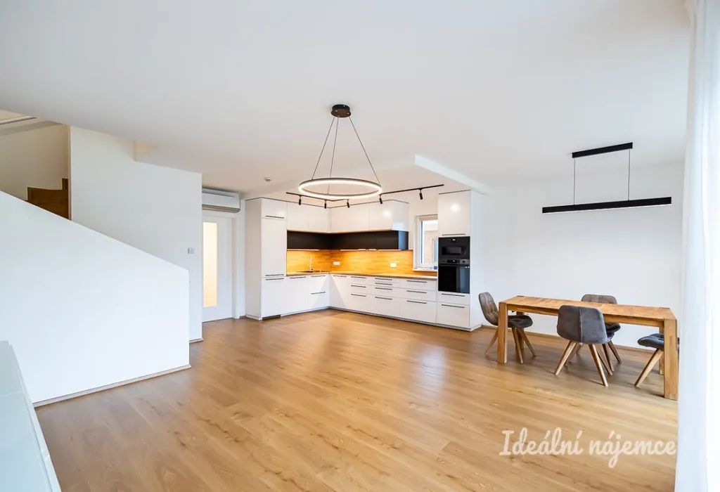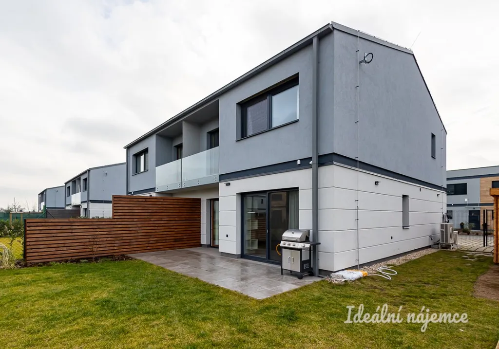 Podnájem je k dispozici od 1.7.2026. Tento moderní, plně vybavený dům představuje ideální kombinaci klidného bydlení v zeleni s pohodlným spojením do hlavního města.
