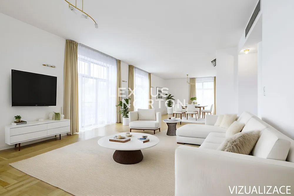 Nabízíme k prodeji výjimečný mezonetový byt 7+1, který se rozkládá ve druhém a třetím nadzemním podlaží moderní rezidence s výtahem, krytým bazénem, saunou, fitness a udržovanou okrasnou zahradou. Velikost bytu je srovnatelná s plochou domu, a tak svým konceptem nabízí mimořádné zázemí. Rezidence je situována na prestižní lokalitě Praha 6 – Bubeneč, v klidné a vyhledávané diplomatické čtvrti, jen pár kroků od parku Stromovka.