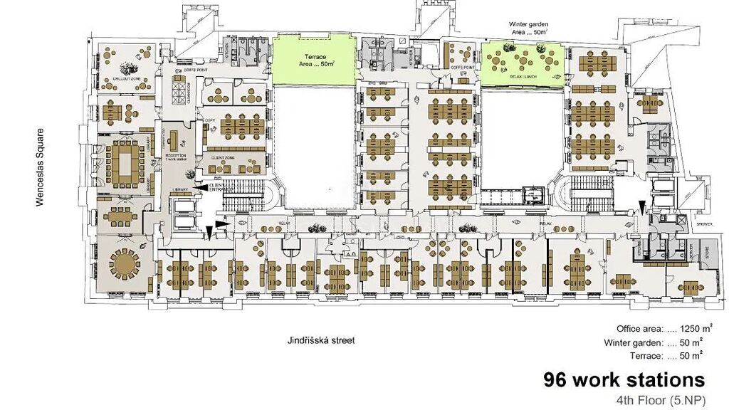Pronájem kanceláří v historické budově Forum. Prostory jsou kompletně zrekonstruovány. Vstup z Václavského náměstí a Vodičkovy ulice, jedna z nejreprezentativnějších budov v Praze. Prominentní umístění. Vysoce flexibilní prostory. Moderní vybavení a technická specifikace - klimatizace, dostatek telefonních linek, 24 hodinová bezpečnostní služba, kvalitní dřevěné podlahy, novobarokní štukované stropy v některých kancelářích, celkově velice reprezentativní prostory. Budova z roku 2004. Aktuálně k dispozici od 4/2026 kanceláře 195 m2 ve 2 podlaží.