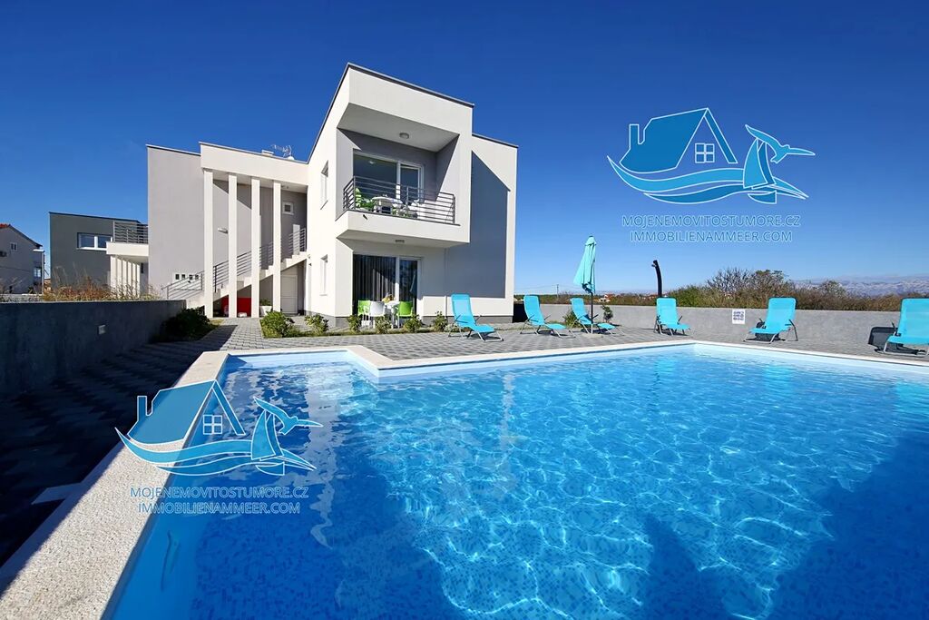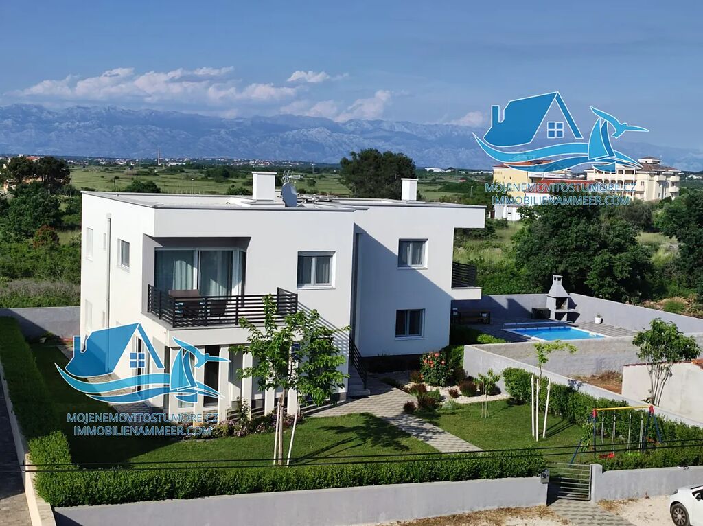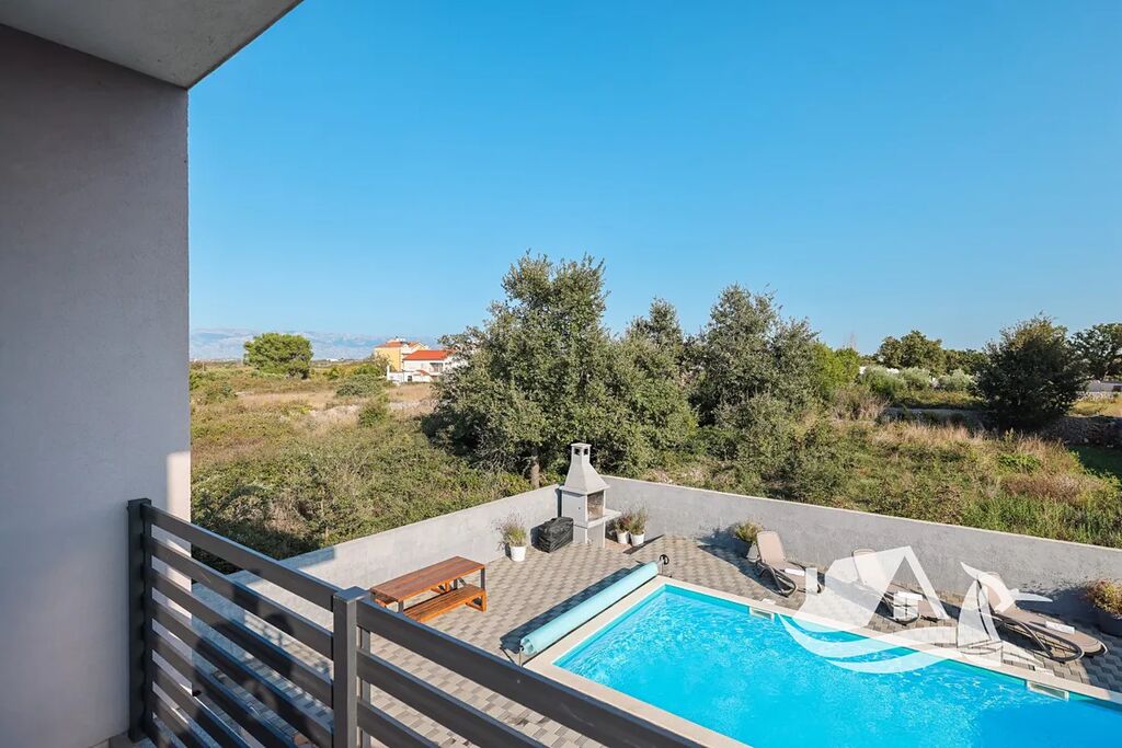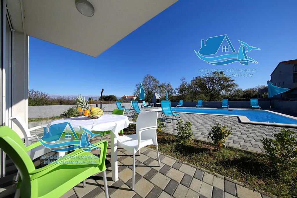 Před domem je šest parkovacích míst, dvůr je upravený a krásně udržovaný, s dostatkem prostoru pro odpočinek i zábavu. Dominantou exteriéru je moderní bazén o velikosti 32 m², který má vyhřívání, je obložen fólií a obklopen prostornou terasou na opalování. Ideální prostředí pro letní relax, večerní posezení s přáteli nebo rodinné chvíle pod dalmatským sluncem.