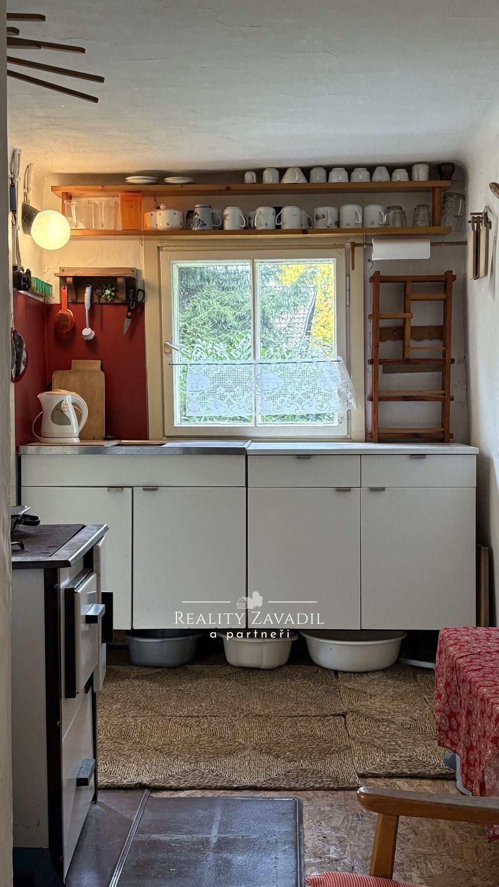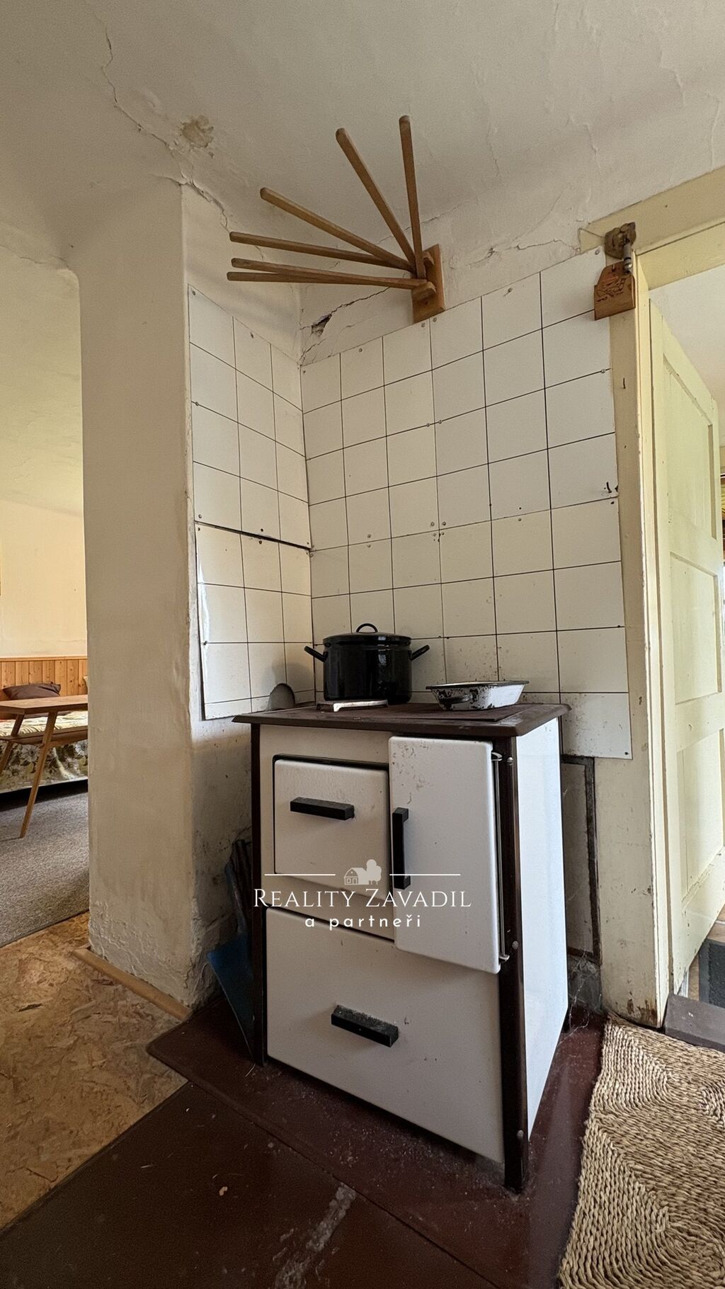 Topení zajišťují kamna na tuhá paliva.