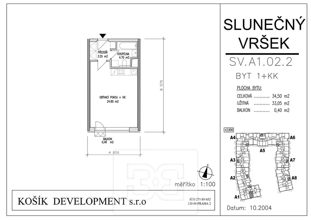 Exkluzivně nabízíme k dlouhodobému pronájmu hezký byt 1+kk o výměře 34,1 m2, s malým balkónkem 0,4 m2 , umístěný ve 2.NP rezidenčního projektu Slunečný Vršek v ulici Rižská na Praze 10 - Hostivaři. Dům se nachází v docházkové vzdálenosti vodní nádrže a lesoparku Hostivař. Byt se pronajímá nezařízený, ale kuchyňský kout je plně vybaven vestavěnými spotřebiči jako je lednice s mrazákem, mikrovlnná trouba, myčka na nádobí, sklokeramická deska s digestoří. V pokojích jsou položeny kvalitní plovoucí podlahy, v koupelně a na WC je z praktických důvodů užita dlažba a obklady na stěnách kolem vany a umyvadla.