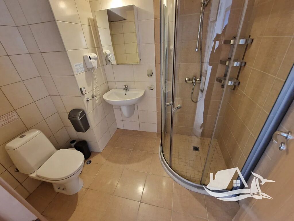 Nabízíme ke koupi nádherný dvoupokojový apartmán o celkové ploše 68 m², který se nachází ve vyvýšeném přízemí prestižního komplexu na první linii u moře ve městě Obzor. Tento apartmán má praktické a funkční uspořádání, které nezahrnuje žádné průchozí místnosti. Skládá se ze vstupní chodby, prostorného obývacího pokoje s kuchyňským koutem a jídelním prostorem, samostatné ložnice, koupelny s toaletou a velké terasy. Terasa je přístupná z obou místností a umožňuje přímý vstup k bazénu a na pláž. Z apartmánu se nabízí jedinečný výhled na moře i na bazén, což z něj činí ideální místo pro odpočinek a relaxaci.