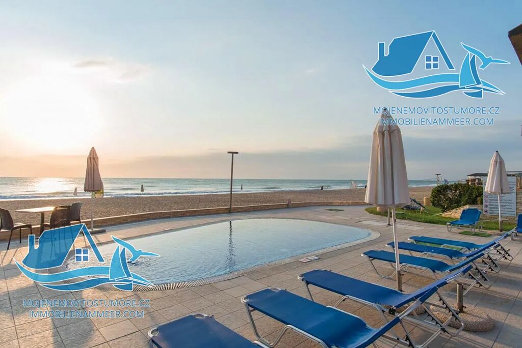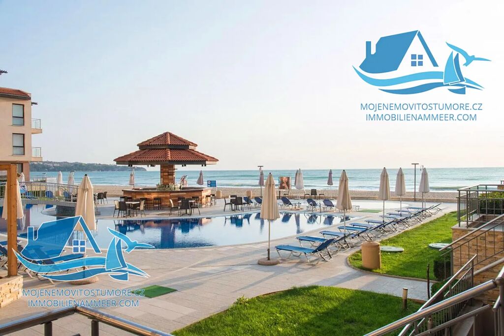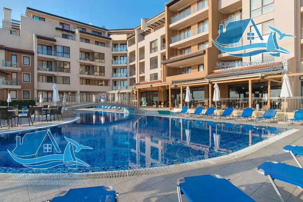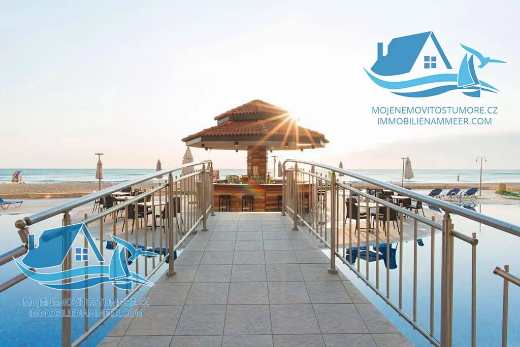 Nabízíme vaší pozornosti 2+kk apartmán s nádherným výhledem na moře ve vynikajícím komplexu Obzor Beach Resort, který se nachází v první linii přímořského města Obzor. Byt se nachází ve čtvrtém patře, zastavěná plocha bytu je 67 m2, celková plocha je 75 m2.