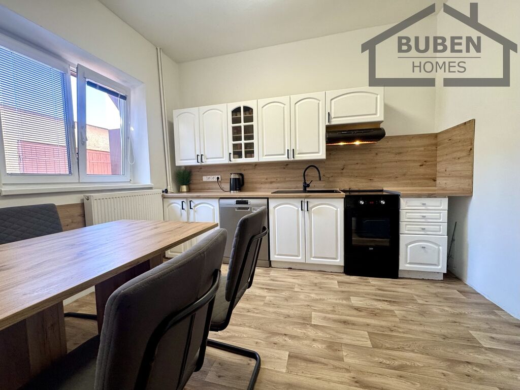 V ceně je zahrnuta kuchyňská linka, sporák, převážná část vybavení dětského pokoje a doulůžko v ložnici.
