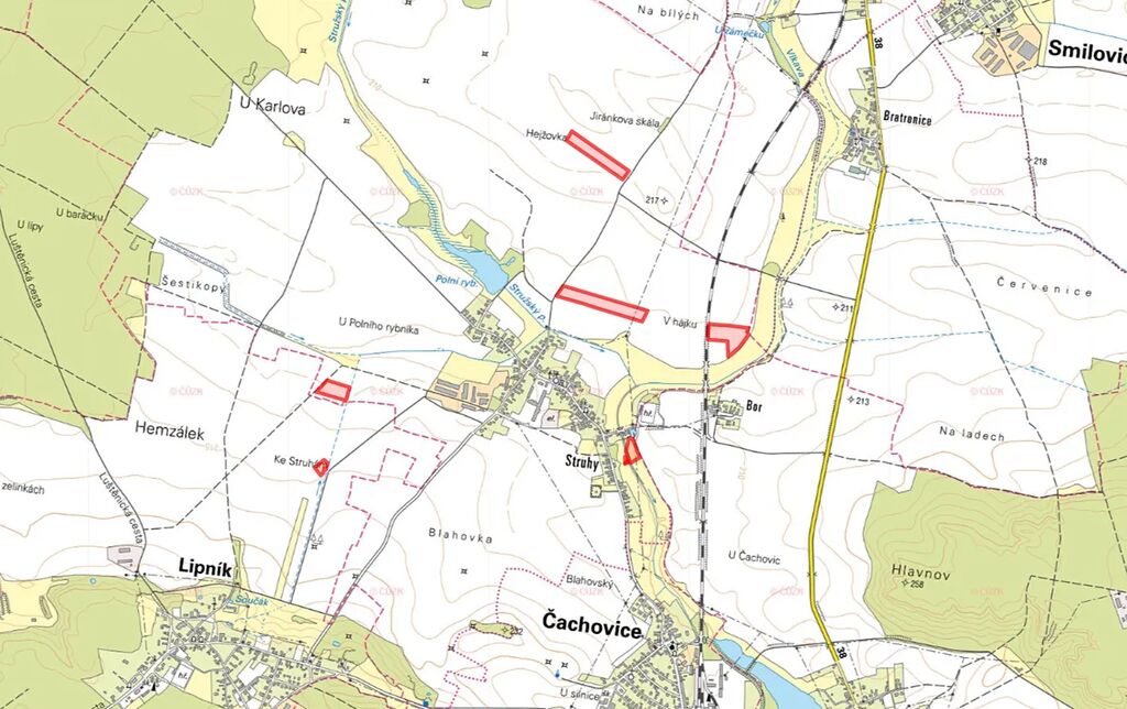 Pozemky jsou zapsány v katastrálních územích Lipník a Struhy.