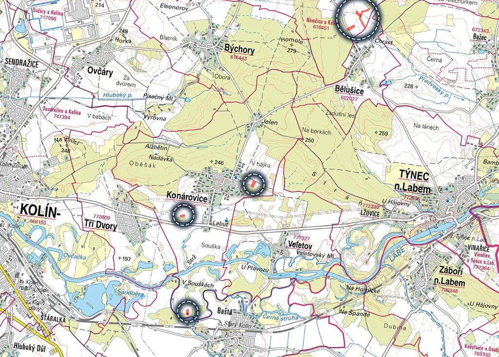 Nabízíme k prodeji spoluvlastnické podíly na zemědělských a lesních pozemcích v katastrálních územích Němčice u Kolína a Konárovice, okres Kolín.