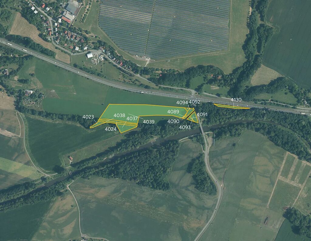 Celková výměra všech pozemků činí 24 606 m², přičemž předmětem prodeje je 12 303 m².