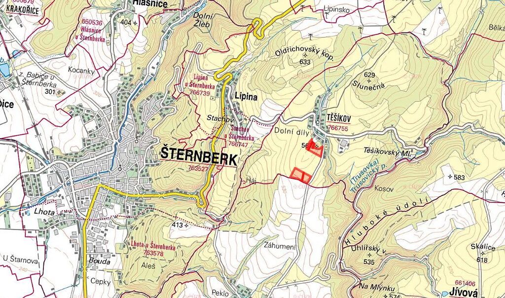 V katastrálním území Těšíkov, obec Šternberk (okres Olomouc), nabízíme k prodeji ideální 1/3 podíl na souboru zemědělských pozemků vedených na LV 49. Jedná se výhradně o trvalý travní porost.
