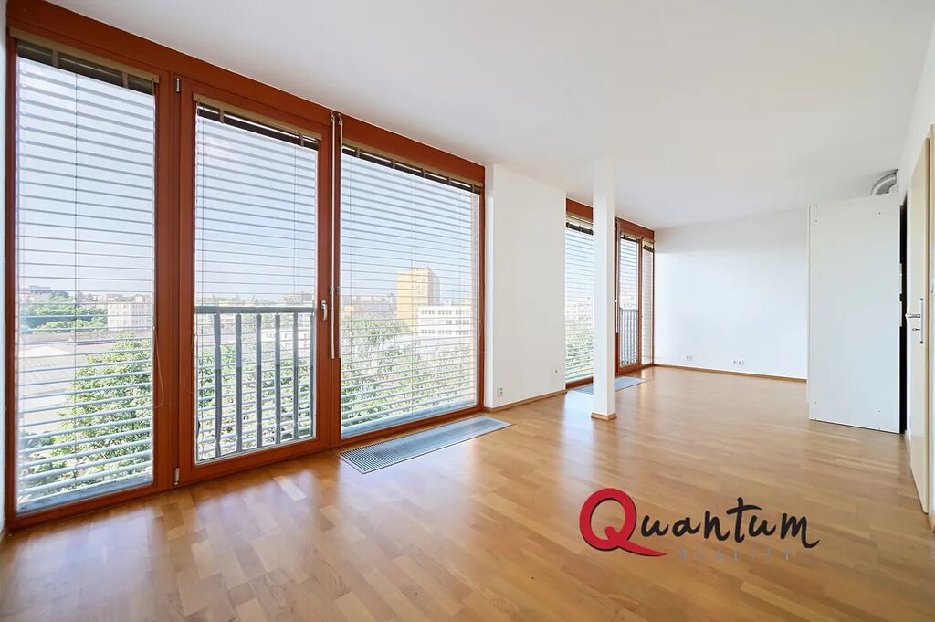 Interiér bytu zaujme především svou světlostí a vzdušností – díky jihozápadní orientaci a francouzským oknům s venkovními žaluziemi působí prostor velmi příjemně a otevřeně.