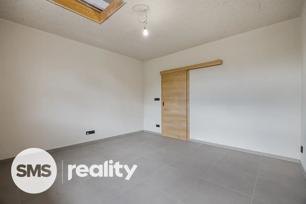 Moderní osvětlení, designové prvky a pečlivě vybrané materiály podtrhují komfort a luxusní atmosféru celého domu. Nemovitost dále potěší prostorným sklepem o velikosti 86 m², který poskytuje dostatek úložného prostoru nebo nabízí možnost domácího wellness či herny. Podkroví domu je před dokončením, všechny klíčové práce jsou již hotové a nádherně odhalené trámy dodávají prostoru jedinečný charakter, přičemž novému majiteli poskytují neomezené možnosti přizpůsobení interiéru podle vlastních představ. Podkroví lze buď propojit s přízemím nebo jej rozdělit a vytvořit dvě samostatné bytové jednotky.