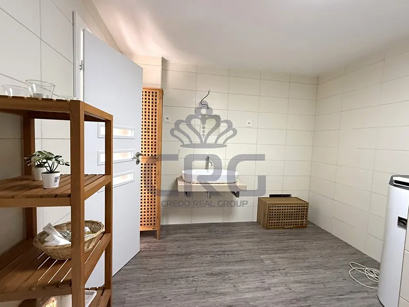 Na zahradě je nádherný bazén se slanou vodou, a tepelným čerpadlem. Na dvoře se nachází nedokončené prostory. Je zde příprava na garáž, venkovní koupelnu s WC, letní kuchyni atd.