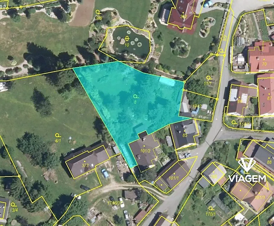 Tento pozemek je zapsán na LV 218 s parcelním číslem 8 o celkové výměře 1324 m2.