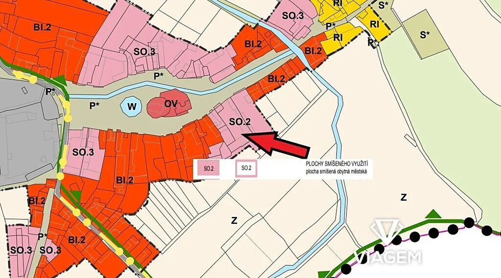 Pozemek představuje jedinečnou investiční příležitost předurčenou budoucím využitím. Zhodnocení pozemků je dáno územní plánem sídelního útvaru, který předurčuje území s pozemky pro rezidenční zástavbu se specifikací “BI - bydlení v RD venkovského typu”. Pro dané území je vypracována územní studie s konkrétním návrhem využití území. V plánu je vybudování přístupových komunikací a inženýrských sítí (elektro, vodovodu a kanalizace). Kapacity stávajících sítí jsou dostatečné, přípojné body jsou v řešitelné vzdálenosti. Pozemky tvoří jednotný územní a funkční celek a jsou rovinné a přístupné z obecních komunikací. Na požádání Vám sdělíme další informace o možnostech využití. Jedná se o prodej 100% podílu, tedy držení pozemků ve výlučném vlastnictví.