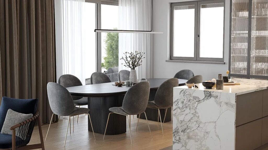 Budova se nachází ve čtvrti kde panuje klid a mír, ideální pro odpočinek a relaxaci, pouhých 400 m od krásné oblázkové pláže. Nastěhování je plánováno na prosinec 2026.
