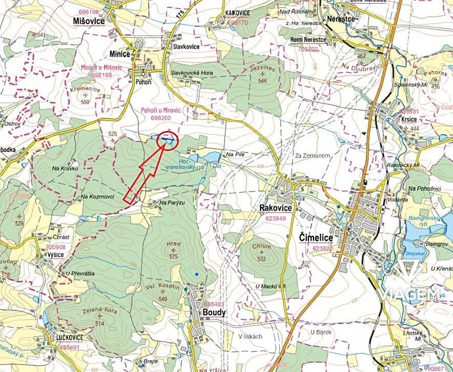 Pozemek je situován v klidné a tiché lokalitě, obklopený krásnou přírodou. Les poskytuje nejen útočiště pro místní faunu a flóru, ale také možnost procházky, turistiku nebo sběr hub a lesních plodů.