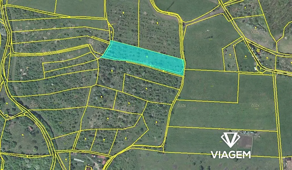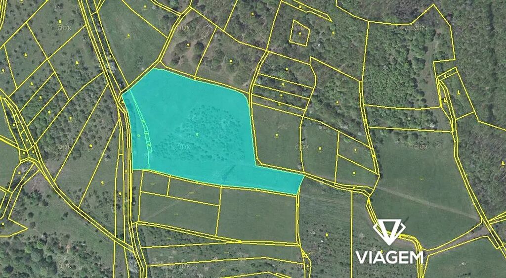Pozemky zapsané na LV 1202, podíl 1/9 o výměře 2617,7 m2.