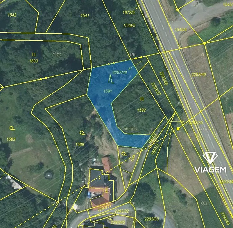 Tento pozemek je zapsán na LV 1258 s parcelním číslem 1591 o celkové výměře 553 m2.