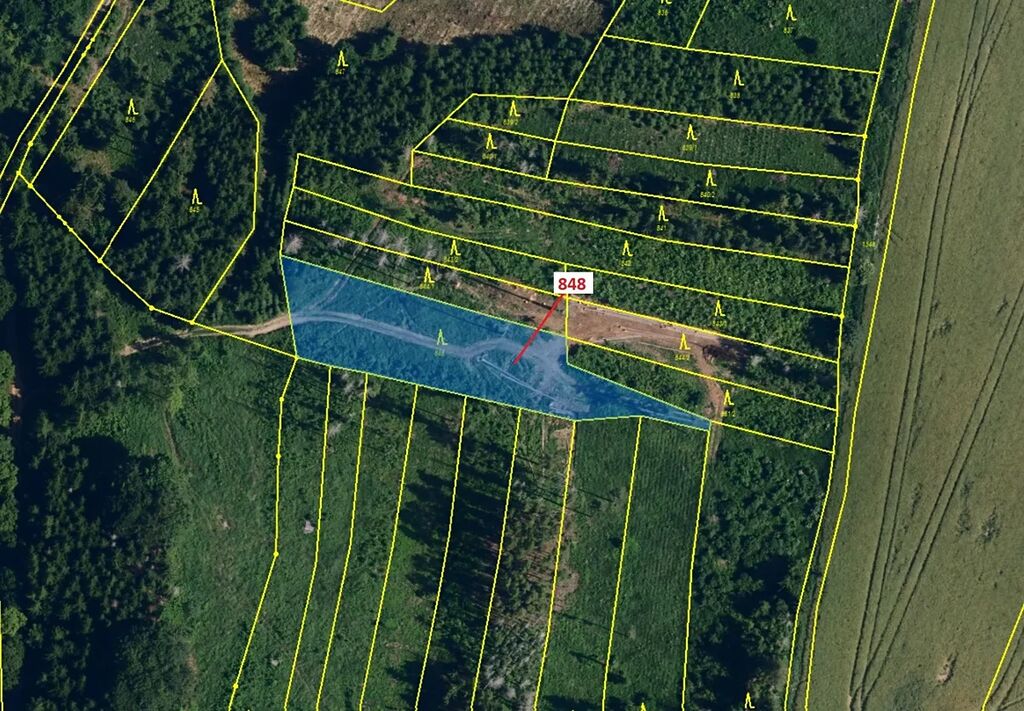 Lesní pozemek o výměře 2 338 m2, parcelní číslo 848, podíl 1/1, katastrální území Vranín, obec Moravské Budějovice, obec s rozšířenou působností Moravské Budějovice, okres Třebíč, Kraj Vysočina. Po těžbě.