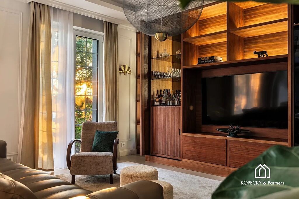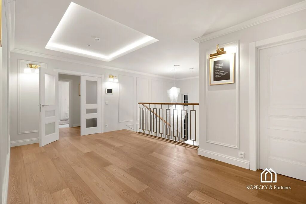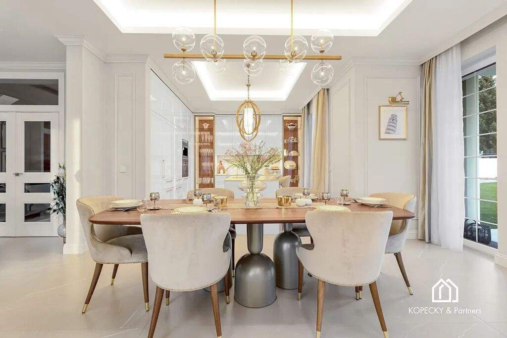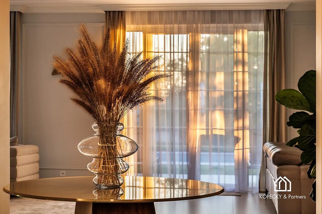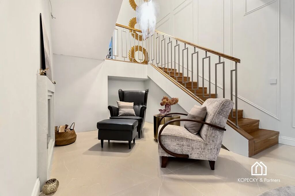 Celý dům je zařízen v duchu sofistikované elegance – od ikonických svítidel navržených Zahou Hadid, přes jídelní stůl Bonaldo pro deset hostů, až po nábytek a osvětlení od značek Eichholz, Moooi či Cattelan Italia. Každý detail byl pečlivě vybrán tak, aby tvořil harmonický celek.