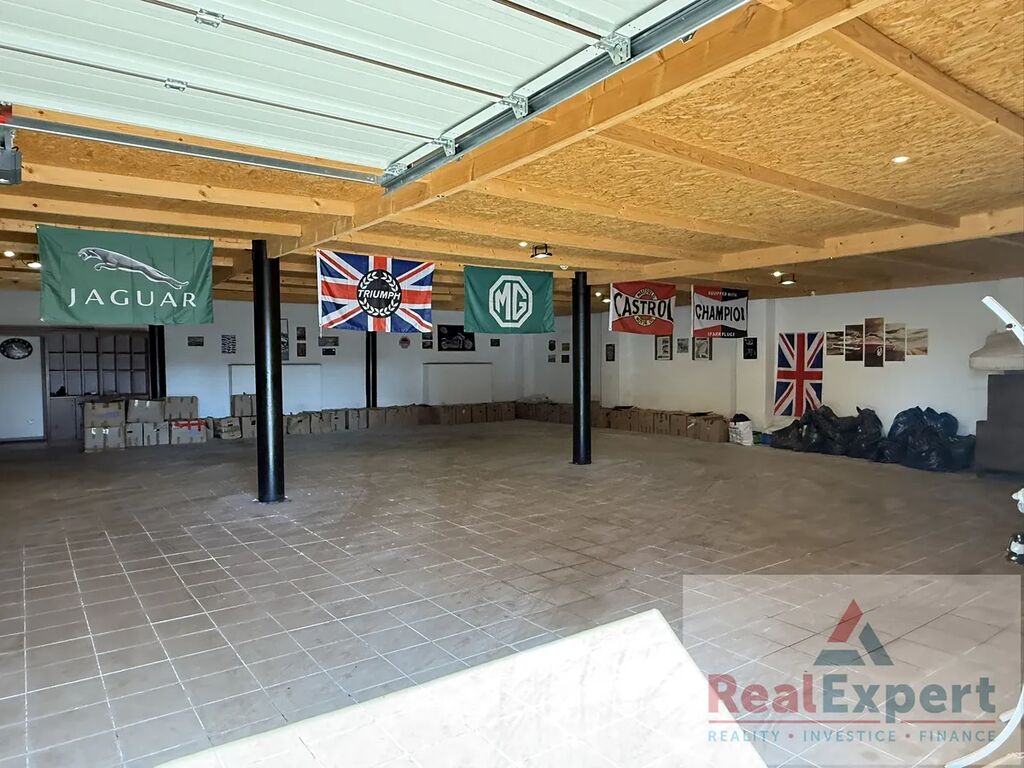 Komerční část tvoří 2 haly – první (45 × 16 m, 720 m²) rozdělená na dvě sekce 2 x 360 m2, využívaná jako garáž a servisní prostor pro sbírku historických vozidel (cca 40 aut), a druhá (35 × 11 m, 385 m²) s dílnou, lakovnou s kvalitní technologií odvětrání a truhlárnou.