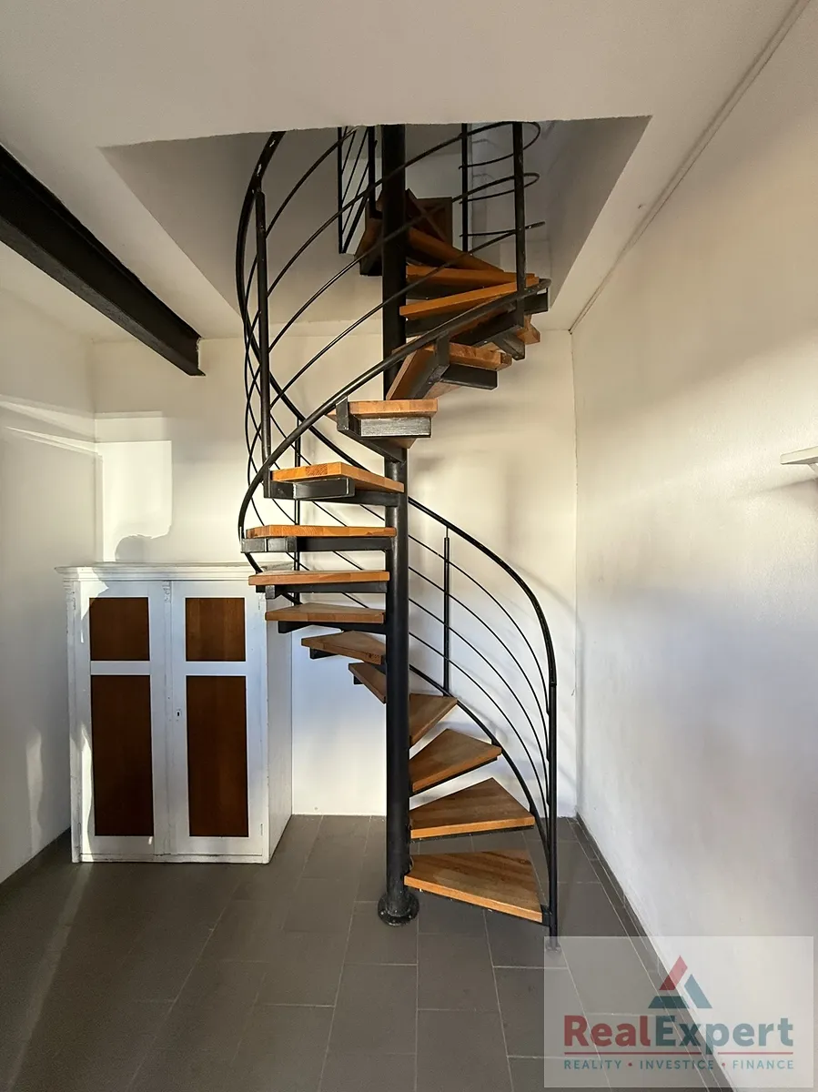 Vedlejší patrová stavba (30 × 10 m, užitná plocha cca 500 m2) má v přízemí technické zázemí, dílny, garáže a sklad. V patře jsou tři apartmány (3+kk, 2+kk, Atelier).