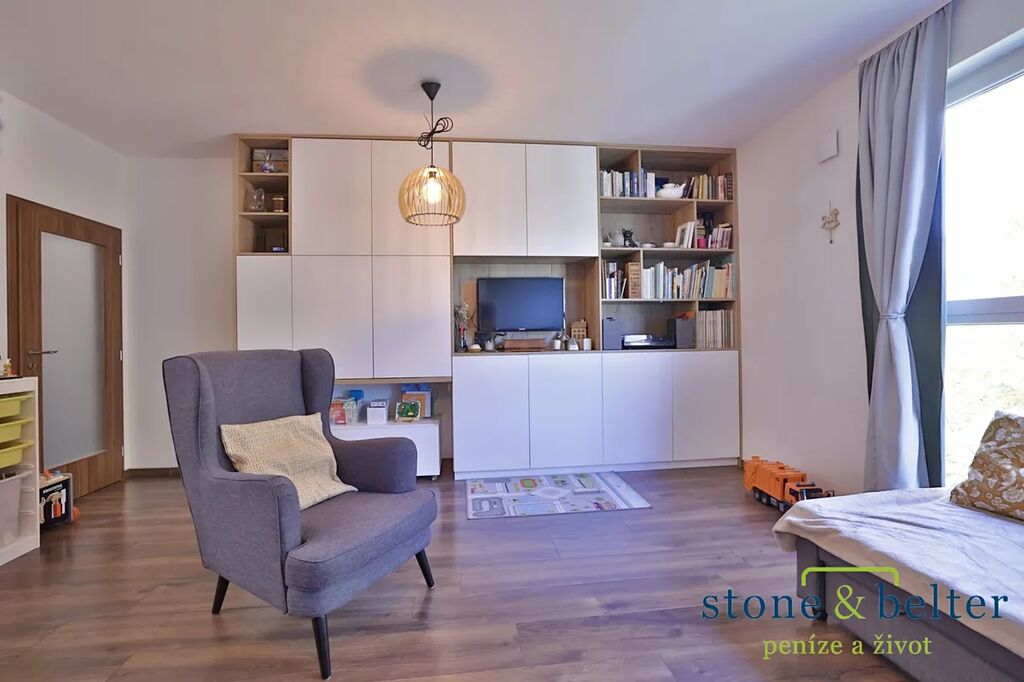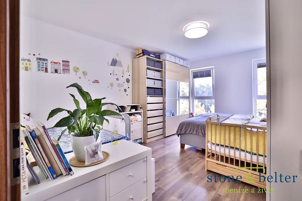 Velká francouzská okna nabízejí uklidňující výhled do zeleně a v kombinaci s orientací bytu na jihozápad zajišťují dostatek denního světla po celý den. Byt působí světlým a vzdušným dojmem. Tepelnou pohodu zajišťuje podlahové topení umístěné pod plovoucí vinylovou podlahou, která díky realistickému vzhledu dřeva dodává interiéru útulný a zároveň elegantní charakter. Vkusně zařízená koupelna a kuchyň vybavená kvalitními spotřebiči již jen podtrhují příjemnou atmosféru.